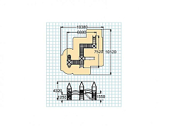Размер: 7520х6880х4320 мм. Высота площадок 1250 и 1550 мм.