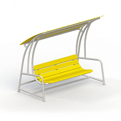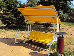Оборудование для зоны отдыха состоит из каркаса, сиденья со спинкой на подвесе, и навеса. Крыша изготавливается из влагостойкой фанеры. Подвес и каркас металлические из трубы круглого сечения, d 42 мм.