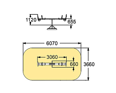 Изделие состоит из элементов: основание, качающая опора, корпус, 2 демпфирующих устройства (армированная резина), 4 сиденья, 2 поручня.