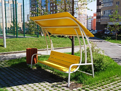 Диван-качели устанавливается на уличной территории детского сада или школы.