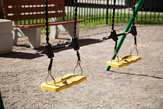 Посадочное место для детских качелей устанавливается на территории ДОУ или школы.