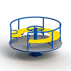 Детская карусель с ограждениями и рулем размещается на территории ДОУ или школы. Уличное оборудование подходит для тренировки вестибулярного аппарата.