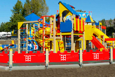 Пластина с зубчатым верхом применяется для оформления площадки. Ряд декоративных элементов позволяет составить забор для детского спорткомплекса. Обратите внимание, указана стоимость одной панели.