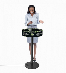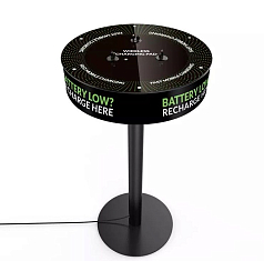 Напольная зарядная станция питает гаджеты перед использованием в школах или других муниципальных учреждениях. Установка с круглым чугунным основанием и столешницей на трубе располагает водонепроницаемыми поверхностями. Оборудование устанавливается в помещениях или на улице.