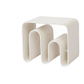 Стеллаж представляет собой конструкцию с фигурным корпусом, оснащенную 5 книжными полками. Две нижнее полки имеют наклон для удобства просмотра литературы не наклоняясь. Боковые опоры с плавными очертаниями расширяются к низу.