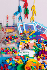 500 деталей 3-х форм и 6-ти цветов соединяются в цепочки. Во время занятий с набором дети осваивают логическое мышление.