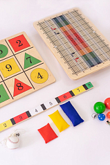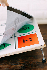 - 2 сменные поверхности для упражнений с мишенью (магнитная основа, цветные цифры и круги);