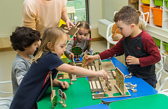 Разноцветные элементы призматической формы используются на занятиях в детском саду.