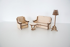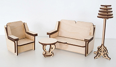 - набор кукольной мебели "Гостиная" (диван, кресло, торшер, журнальный столик);