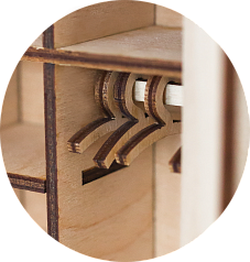 Материалы: ЛДСП (16 мм), ДВПО (3,2 мм), ПВХ (0,4-2 мм), металл.