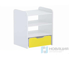 В просторных отделениях открытого типа можно размещать печатные издания, канцелярские принадлежности, поделки, игровые наборы, горшечные растения, даже небольшие клетки для живого уголка. Цветные выдвижные ящики с необходимой фурнитурой позволяют содержать в сохранности организационные документы, журналы учета и иные предметы, не предназначенные для всеобщего обозрения.