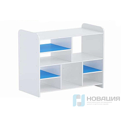 Стеллаж с 20 ячейками подходит для оборудования раздевалок школ и детских садов. Также он может выполнять в ДОУ функцию горшечницы, это прочная конструкция из качественных материалов.