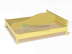 Кровать на металлокаркасе с четырьмя опорами размещается в группе детского сада. Это крепкая конструкция со скругленными спинками. Прочные материалы изделия нетоксичны.