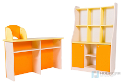 Включает в себя стол, на котором можно расположить кассовый аппарат, и витрины для выставки товаров. Внизу находятся шкафчики, на полках которых хранится товарный остаток. Зона для игры доступна с 2-х сторон, благодаря чему ее можно устанавливать посередине помещения. Разноцветный корпус, оригинальные аппликации и заметная вывеска привлекут внимание малышей, и пробудят интерес к игре.