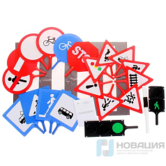 Комплект позволяет ознакомить обучающихся с изображениями, номерами и назначениями дорожных знаков и светофоров, а также сформировать представление о технических средствах организации дорожного движения.