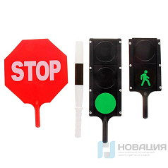 Набор для тематических занятий поможет рассказать о безопасности на дороге. Реквизит сопровождается печатным пособием. Комплекс включает в себя светофоры для пешеходов и автомобилистов, чтобы ребенок рассмотрел ситуацию от лица разных участников движения. Знаки на стойках меняются местами. Регулировочный жезл научит контролировать поток машин, а пешеходная дорожка – переходить по правилам.