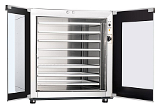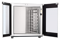 Основной режим работы — расстойка при температуре 45 °С и влажности 50-95%. Все детали выполнены из нержавеющей стали.