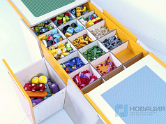 Размеры отсеков ориентированы на габариты конструкторов Lego. Предусмотрена специальная штора-роллета выполненная из пластика с автоматическим замком и двумя ключами в комплекте.