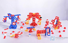 Набор позволяет узнать о профессиях крановщика, строителя, экскаваторщика, водителя, дорожного строителя, погрузчика. С помощью деталей можно сконструировать 7 моделей строительной техники.