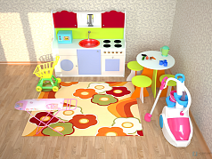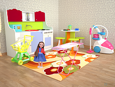 Готовая игровая зона предназначена для сюжетно-ролевых игр старшего и подготовительного дошкольного возраста с учетом ростовых групп как для девочек, так и для мальчиков.