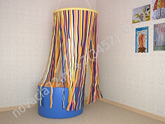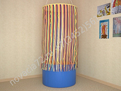 Уголок предназначен для сенсорной комнаты. Зона поможет ребенку расслабиться, снять напряжение и беспокойство. Мягкий островок комфортный для сидения, а цветные ленточки оказывают цветотерапевтический эффект.