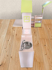 Имитация водопроводного крана, раковины и электрической плитки помогает освоить бытовые навыки. Плитка включается и выключается.