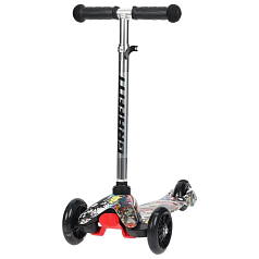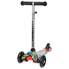 Складной самокат со светящимися колесами подходит для оснащения автогородка. Выдерживает нагрузку в 40 кг.