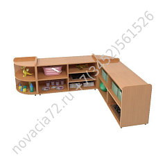 Многофункциональный стеллаж подходит для хранения игрушек и дидактических материалов в ДОУ и школе. Состоит из 4-х модулей, которые легко расставлять в различной конфигурации. Можно поставить этот комплект у стены или посередине помещения, разграничив игровые зоны.