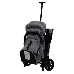 Коляску с телескопической ручкой можно катить как чемодан. Покупки помещаются в корзину. Колеса съемные. 2 передних поворачиваются. Тормоз задний, расположен по центру. Обивка дополнена карманом. От солнца и ветра спальное место (800х320 мм) накрывается капюшоном со складным козырьком. Есть москитная сетка, смотровое окно на липучке. Капюшон удлиняется при открывании застежки-молнии.