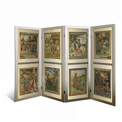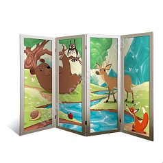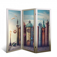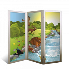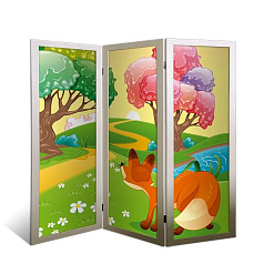 Легко устанавливается и быстро убирается. Благодаря многостворчатой конструкции, ширму удобно хранить в сложенном виде. Фотоширмы можно использовать для отгораживания учебных зон и высоких конструкций, в театральных гримерках и в уголках ряжения.