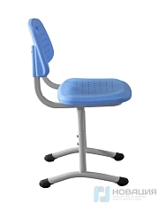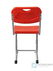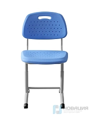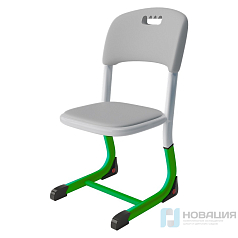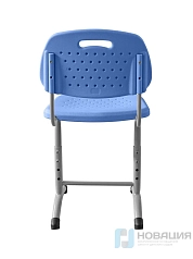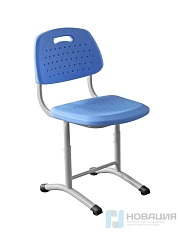 Школьный стул выполнен из материалов высокой прочности. Конструкция стоит на 2-х опорах с пластиковыми протекторами. Каркас выполнен из плоскоовальной трубы. Прямоугольное сидение и спинка перфорированные, крепления скрыты. Высота регулируется, фиксация жесткая. В спинке предусмотрена прорезь для удобства передвижения.