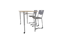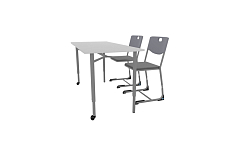 Столы оснащены телескопическими ножками на колесах, благодаря чему легко передвигаются и компонуются между собой. Композиции из таких столов пригодятся во время работы в группах. Параметры стола подстраиваются под аудиторию: высота фиксируется в 5-ти положениях. Столешница из ЛДСП имеет форму прямоугольника, верхние кромки и края скругляются.