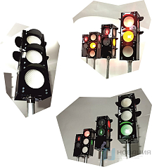 - Светофор транспортный, размеры корпуса (ШхГхВ) - 200х100х550 мм, диаметр глазка - 120 мм - 4 шт.;