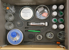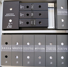 Представляет собой лабораторный стол со встроенными отделениями, в которых размещается оборудование и принадлежности для проведения опытов. Каждое отделение стола подписано в соответствии с разновидностями наполнения и запирается на ключ.