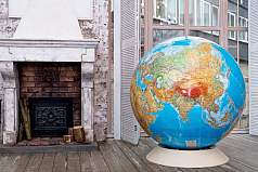 На цветной трехмерной модели Земли обозначено местоположение и границы государств, их названия и столицы, а также подписаны моря и океаны. Глобус устанавливается на подставку, его можно вращать вокруг оси.