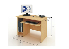 - Компьютерный стол (ЛДСП (16 мм), цвет бук, размеры (ШхГхВ): 1000х600х750 мм). Точка подключения LAN, точка питания (220 В).