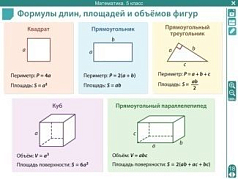 - Формулы (площади и периметра прямоугольника, объема прямоугольного параллелепипеда);