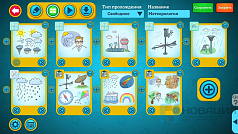 - 6 карточек с иллюстрациями погодных явлений и надписями,