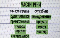 - набор “Части речи”, размеры (ДхШ) - от 60х160 до 70х250 мм - 13 магнитных карточек для классификации частей речи.