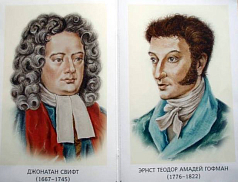 Цветные портреты писателей сопровождаются выдержками из краткой биографии, вопросами для викторин, пособием для учителя.
