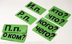 - набор “Падежи”, размеры (ДхШ) - 70х150 мм - 18 магнитных карточек с названиями падежей и падежными вопросами;