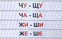 - Гласные буквы после шипящих ЖИ-ШИ, ЧА-ЩА, ЧУ-ЩУ;