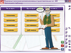 Предназначен для изучения склонения существительных. Карточки для каждого склонения отличаются по цвету. С использованием набора можно проводить различные игры и соревнования в рамках урока.