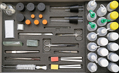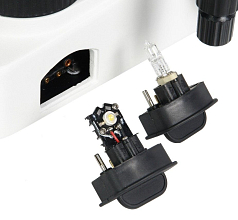 - штатив с осветителем, регулируемой полевой диафрагмой, 2-мя сменными источниками света,