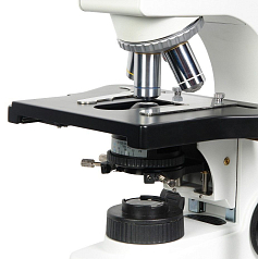 Микроскоп рассчитан на объективы DIN c парфокальной высотой 45 мм. Длина тубуса "бесконечность". Столик изменяет высоту в пределах 8 мм. Диапазон перемещения препарата составляет 75х50 мм. Светофильтры устанавливаются на коллектор.