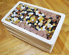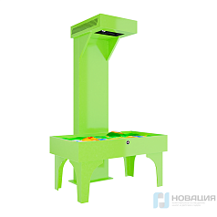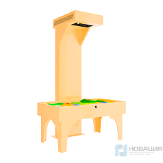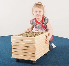 На поверхности стола 22 секции с различными природными сенсорными наполнителями. Ячейки закрываются крышками с отверстиями.