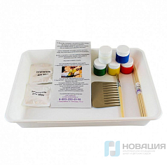 - наборы для рисования для каждого планшета (краски 5 шт. по 20 мл, загуститель, бумага, кисточка, гребень);