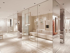 Классическая скамья без спинки размещается во входной зоне. Конструкция состоит из металлического каркаса на 4-х опорах, 2-х поперечных перекладин, 1 продольной перекладины, прямоугольного сиденья.