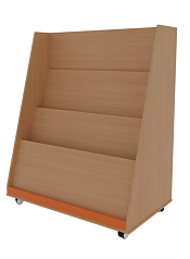 Демонстрационный стеллаж для школы стоит на прямоугольном основании.