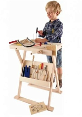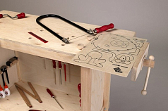 Складной верстак для творческих занятий в детском саду отвечает требованиям обстановки: он компактен, практичен, экологичен, многофункционален. Такой рабочий стол быстро собирается (и легко разбирается, приобретая вид небольшого ящика). Благодаря его мобильности, можно экономить пространство в небольших помещениях.